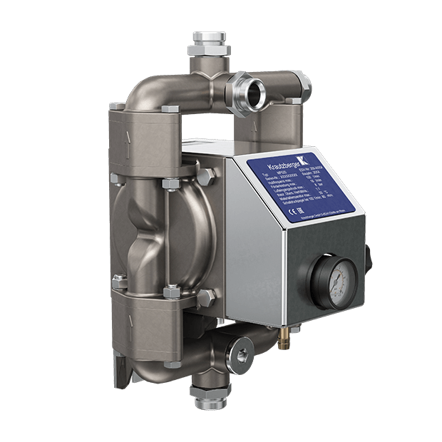 Pompa charakteryzuje się prostą obsługą i możliwością płynnej regulacji ciśnienia. Automatycznie utrzymuje ustawione ciśnienie, włączając się tylko wtedy, gdy materiał jest pobierany. Obudowa wykonana jest z trwałej stali nierdzewnej, a opcjonalnie dostępne są różne materiały membran i zaworów, co pozwala dostosować pompę do specyficznych potrzeb.